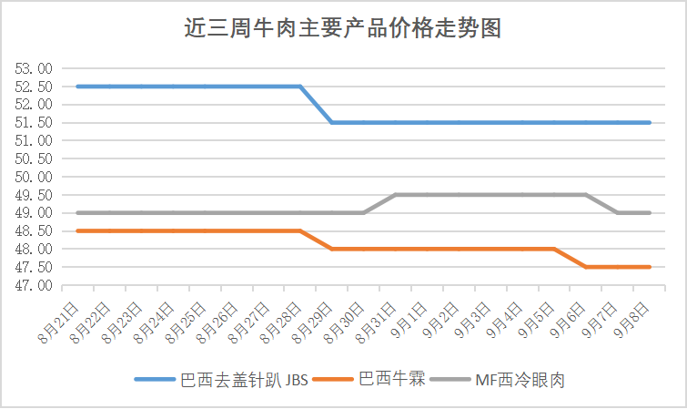 本周进口牛肉现货市场方面,牛肉价格出现微跌态势,周内跌幅在0.3-0.5元/公斤左右。本周暂未出现“双节”备货需求,终端采购体量小,批发环节需求商继续补仓意愿低,上下游成交均显平淡。
