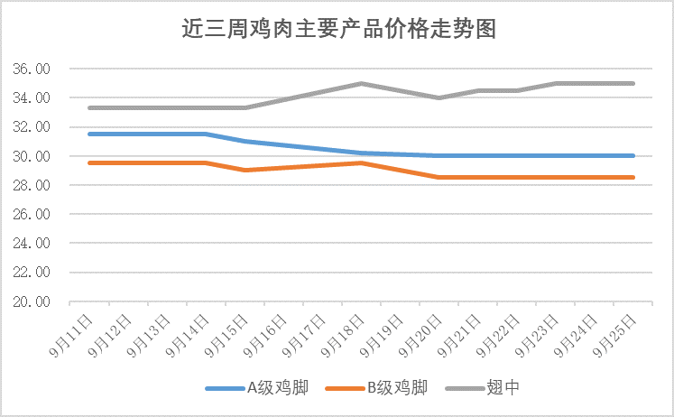 传统的双节效应并未扭转中国鸡肉市场的行情。综合券商研究数据,市场需求疲软,整体供大于求的情况下,白羽肉鸡的售价下滑了4.77%至3.99元/斤。近期白羽肉鸡的毛鸡价格接近今年内的低点。
