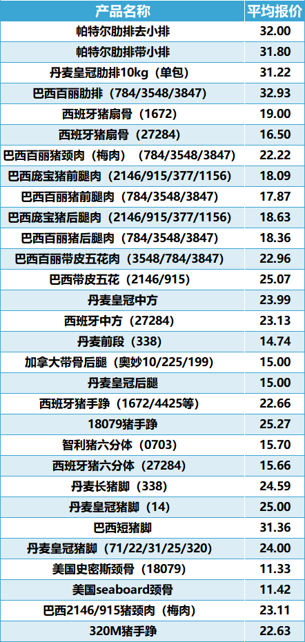 进口猪肉现货市场价格
