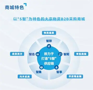 中建智采商城通过搭设“智集内外系统、智选采供双方、智联物流追踪、智简审批流程、智享供应链金融”的“5智”体系,优化“指导采购生产、确保如期交付、发展产学研用”三线管理,实现“多、快、好、省”,促进新型关系网形成,提升供应链整体效益。中建智采B2B商城将深入供应链生态各环节,满足客户需求,解构业务流程,与合作伙伴一起,发现问题,解决问题,构建供应链新生态。